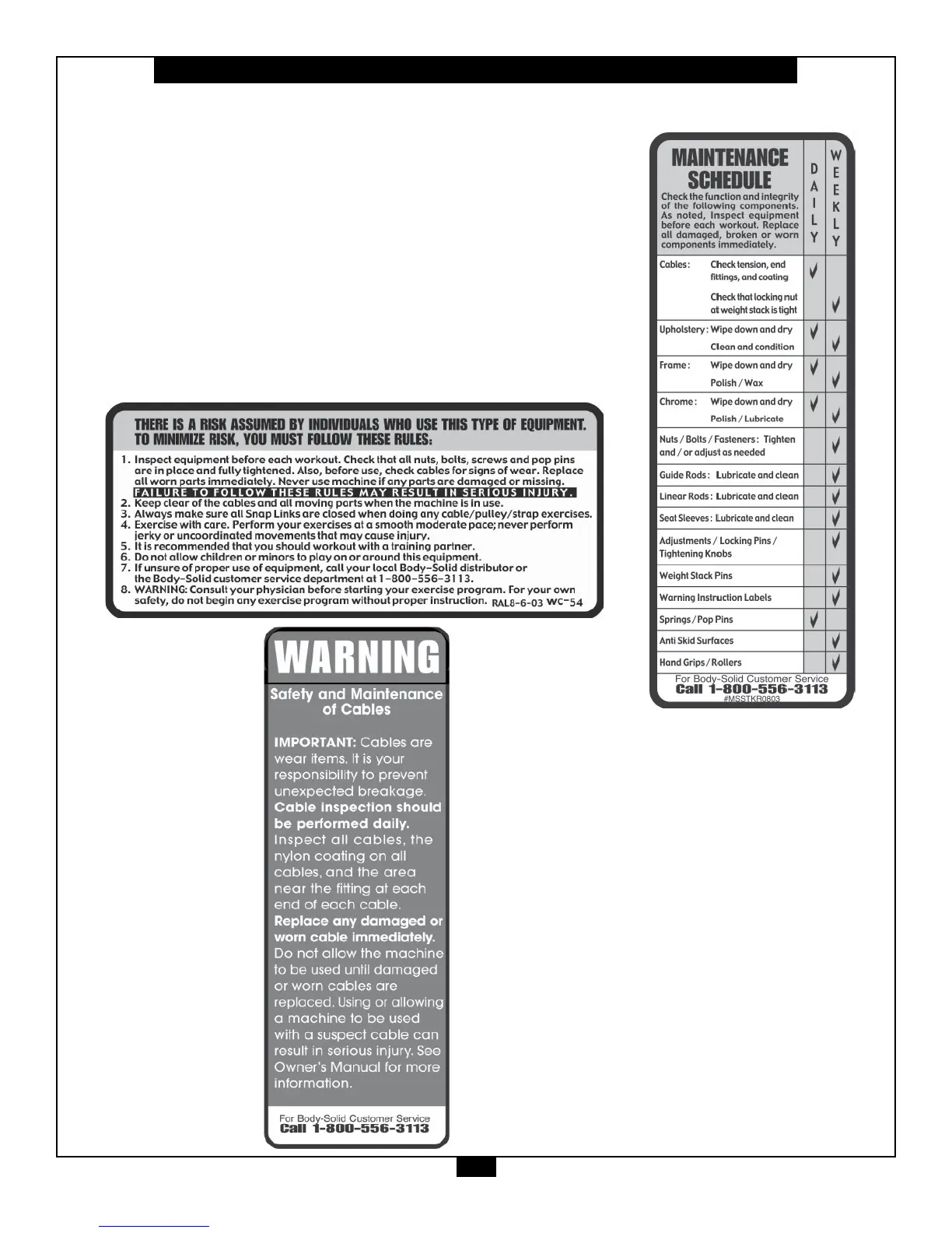 sure all warning labels are legible and intact. Replacement