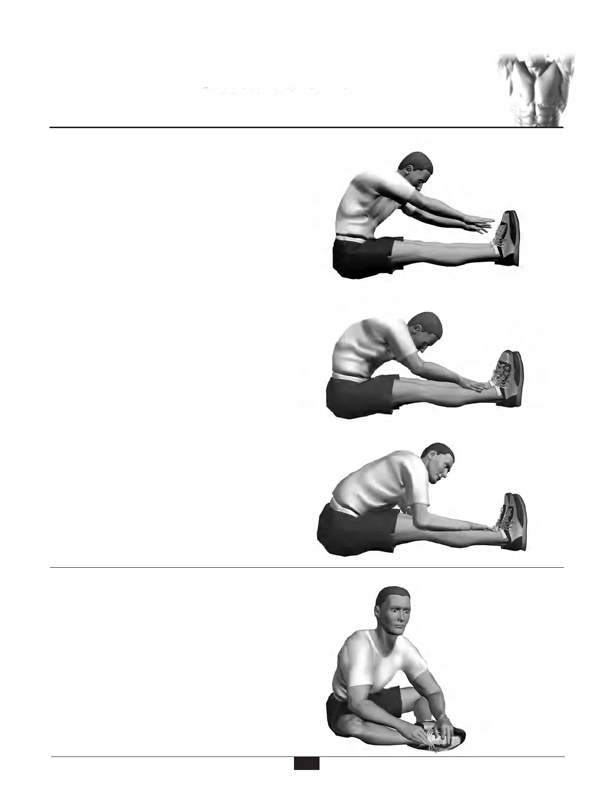 1. Sitting with the upper body nearly vertical and legs straight, flex