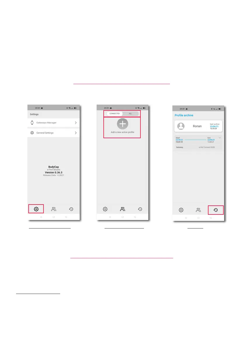 1- Creation / prole use: A prole corresponds to a subject that intend to use an ePerf Connect device. You
