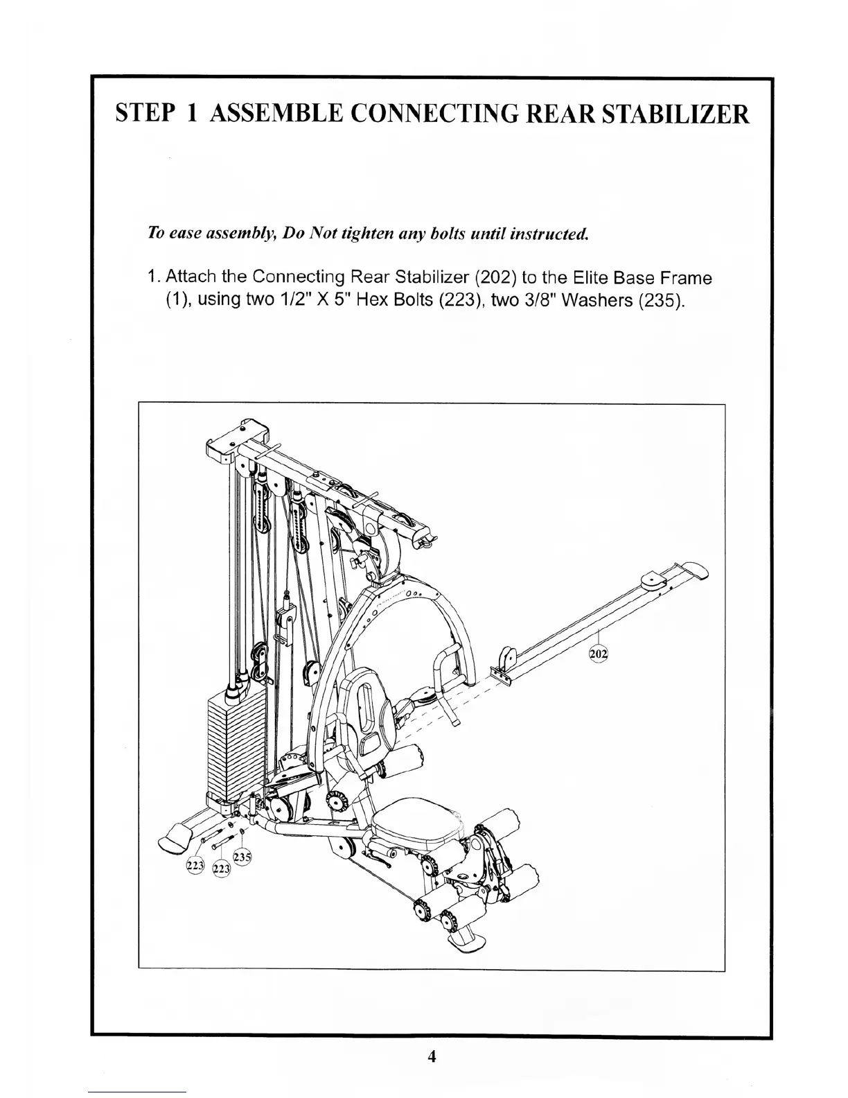 BodyCraft ELITE - Step 1: Assemble Connecting Rear Stabilizer