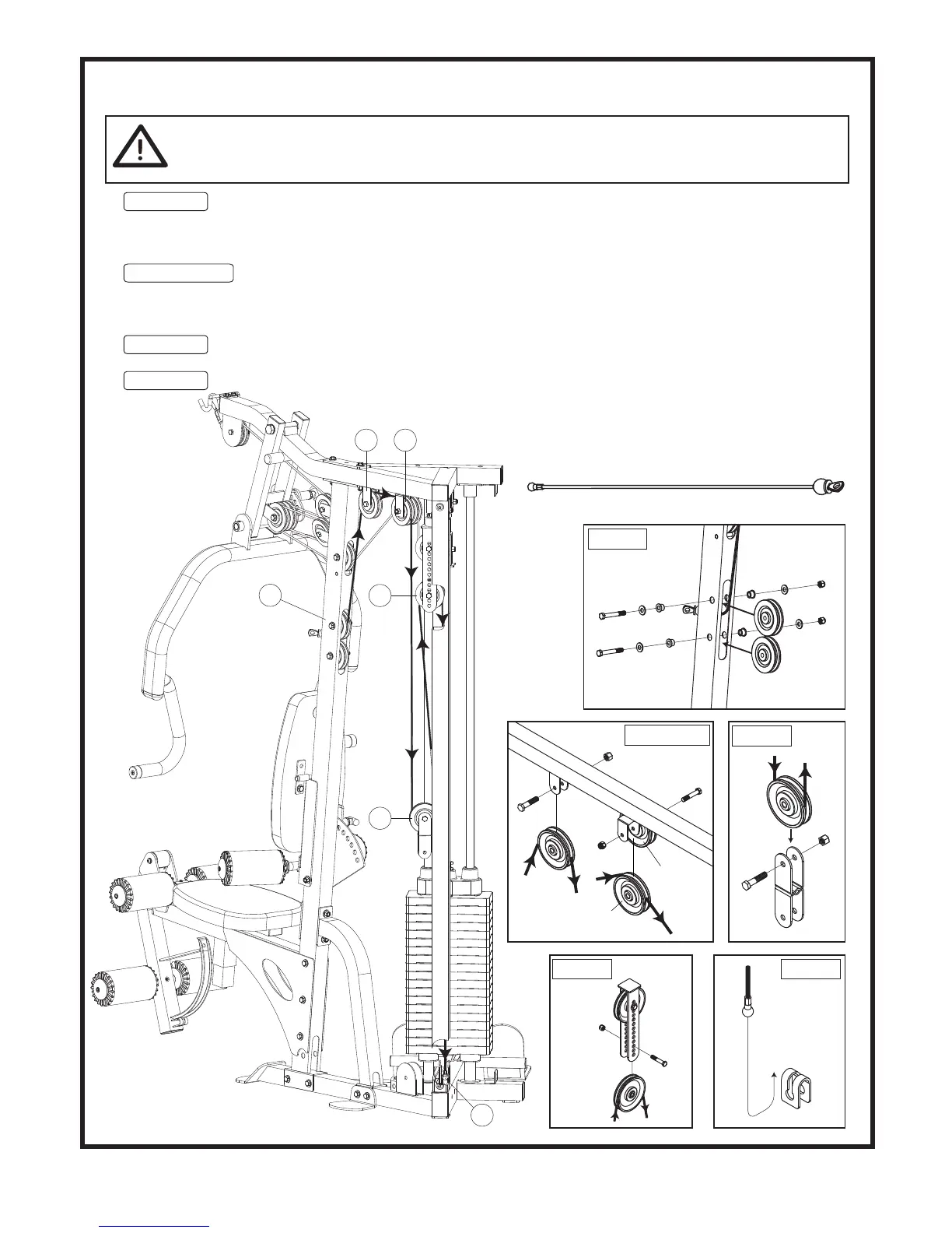 3/8" NYLA-NUTS (104). The cable should run from the bottom of the upper Pulley A1 up to A2.