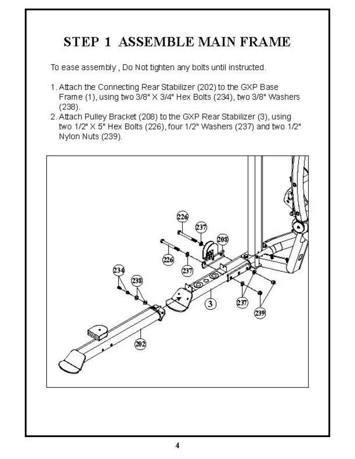 Frame (1), using two 3/8" X 3/4' Hex Bolls (234), two 3/8" Washers