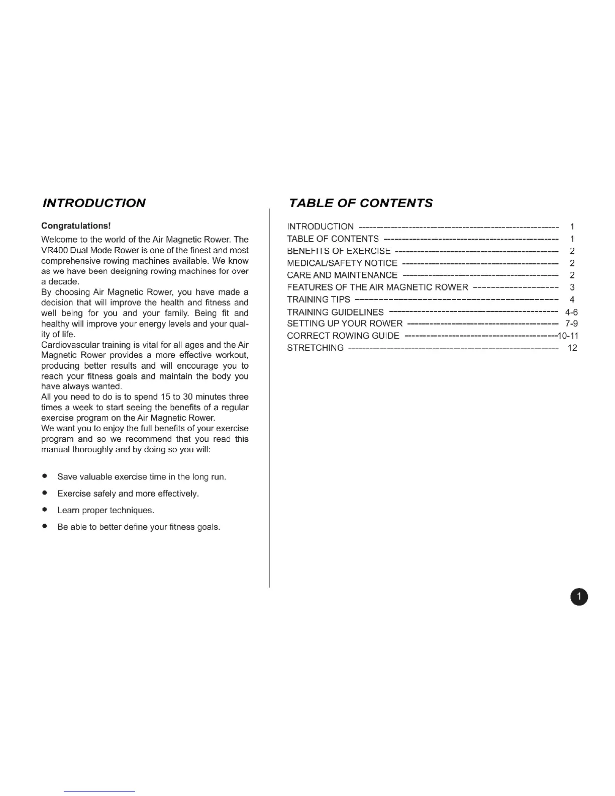 BodyCraft VR400 - INTRODUCTION AND USER GUIDANCE; Getting Started with Your Rower