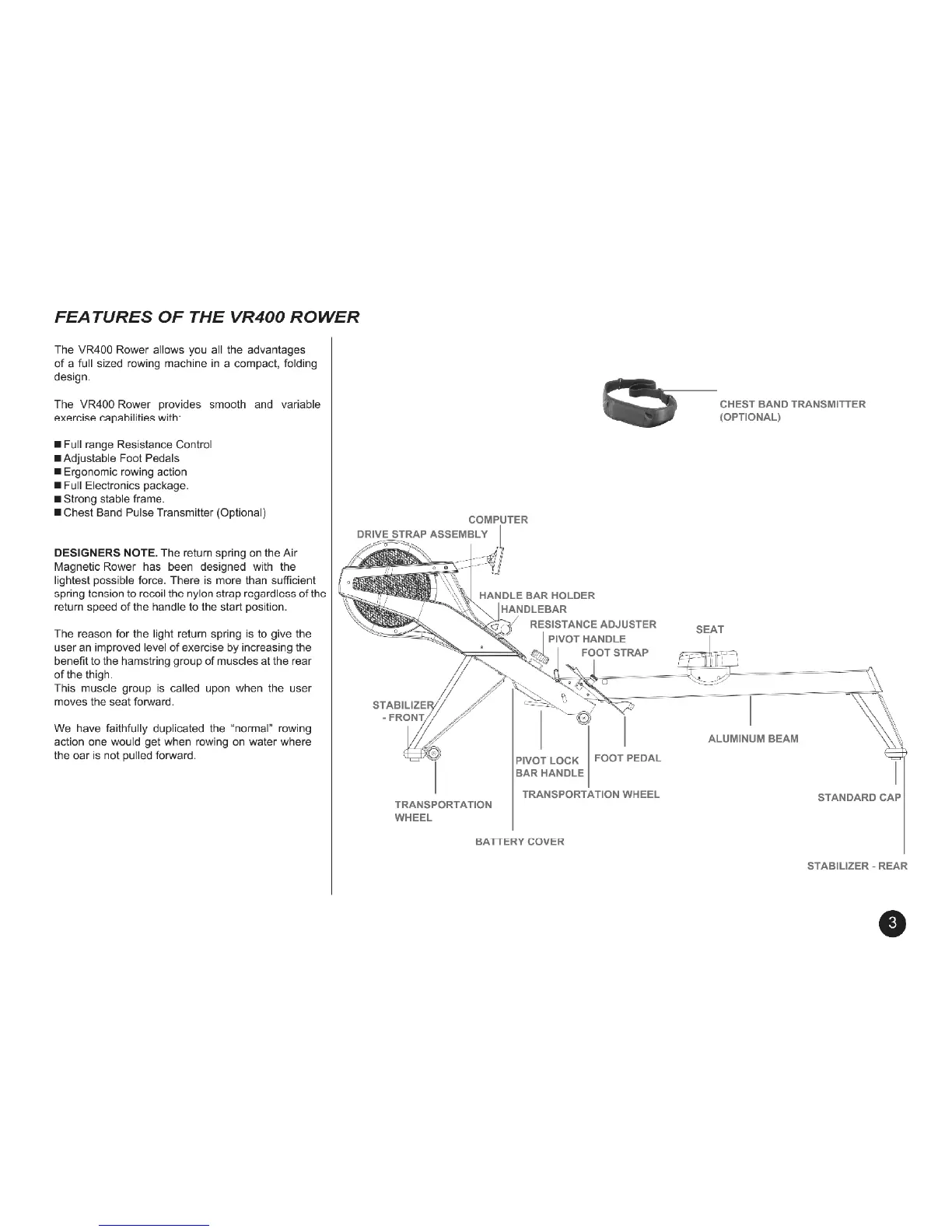 BodyCraft VR400 - ROVER FEATURES AND TRAINING PRINCIPLES; Key Features of the VR400 Rower