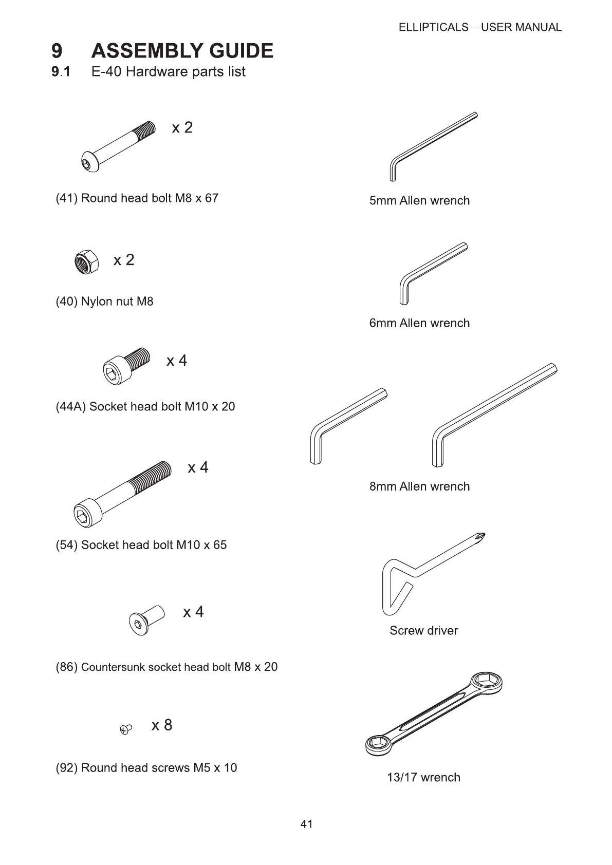 Bodyguard E-40 - Assembly Guide; E-40 Hardware Parts List