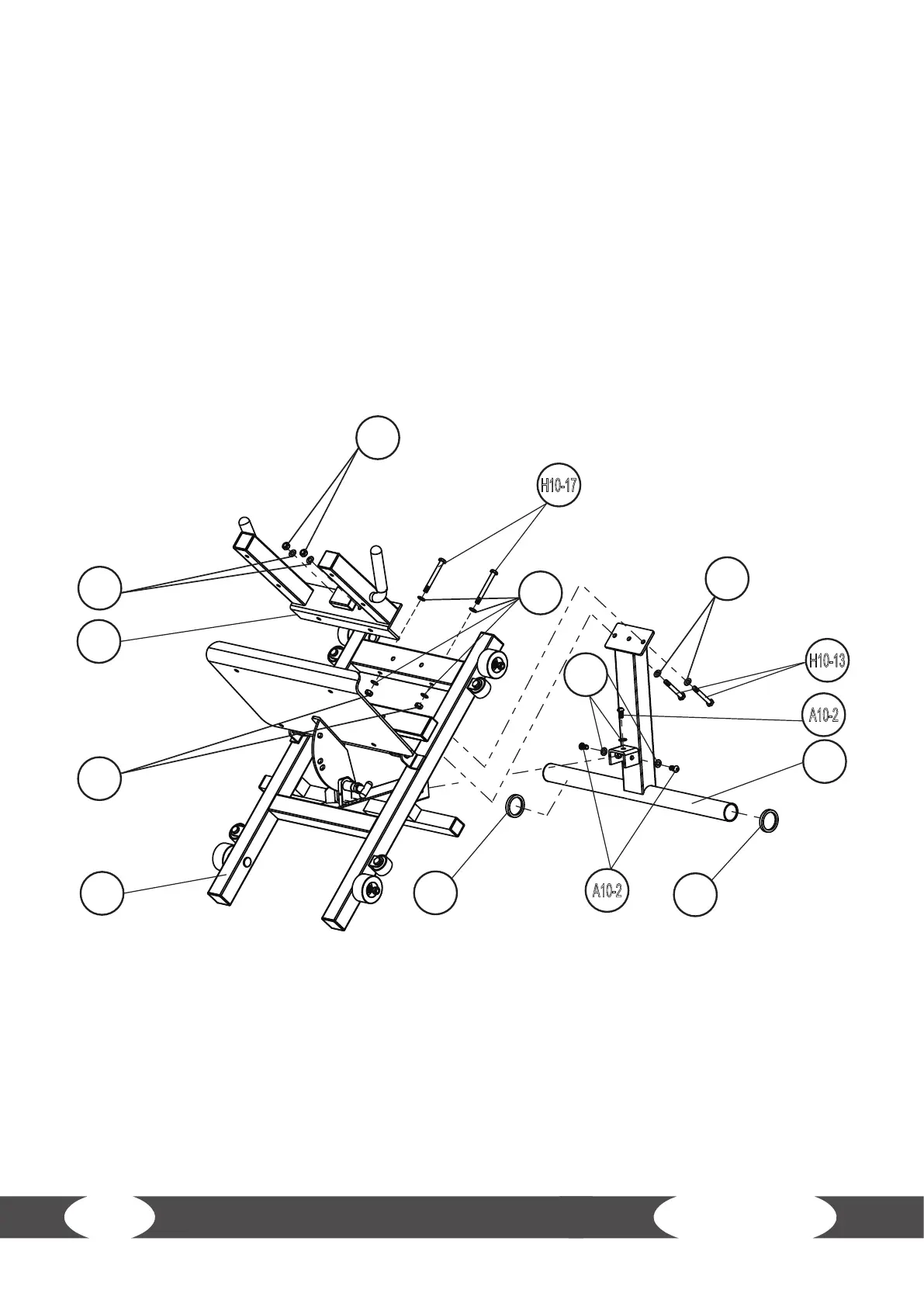 3.Connect Carriage (#6), Shoulder Pad Mount (#8) and Weight Carrier (#9) with two bolts (H10-13),