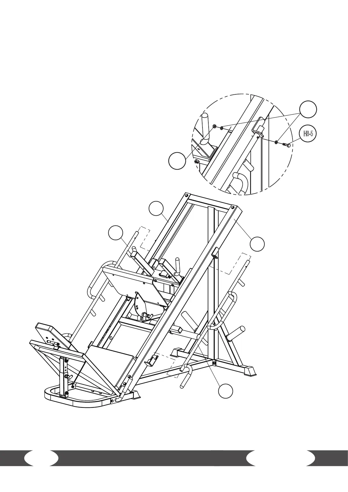 2. Attach the left safety stopper (12) to the left rail (4) with one bolt (H8-5), two washers (w8) and