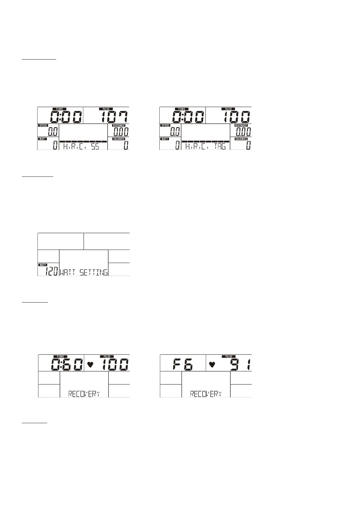 After exercising for a period, keep holding on hand grips or wearing chest strap and press RECOVERY key. All function display will