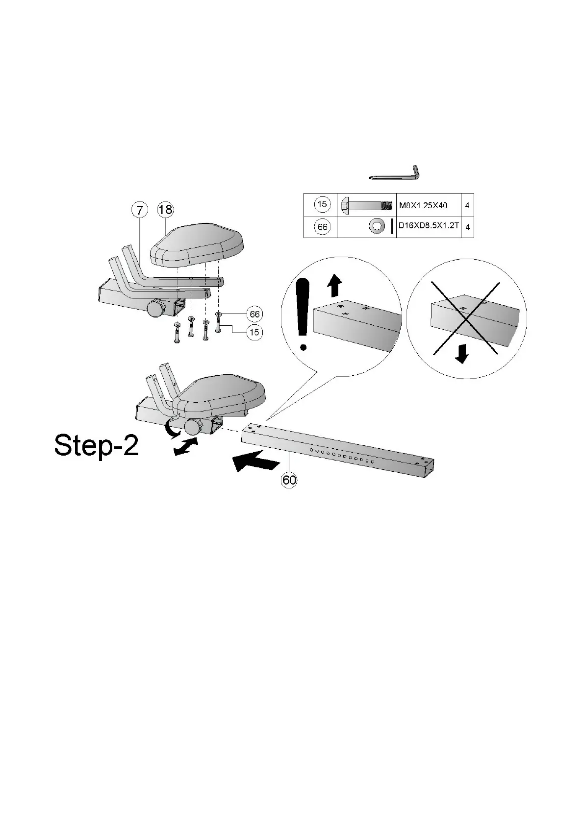 2) Assemble the seat post(7) to the sliding beam(60) as the picture shown.