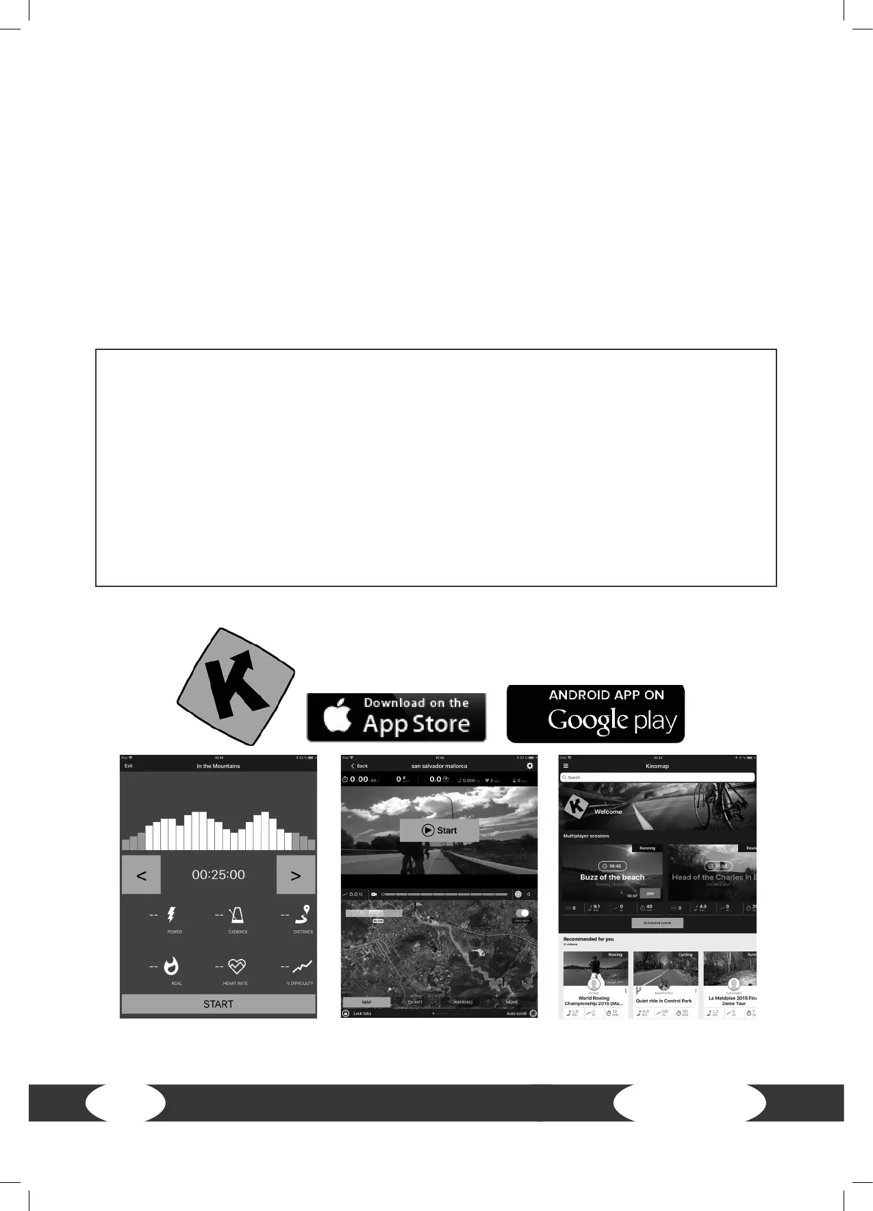 “Kinomap” or “Zwift”. Please note that these apps are produced by an external manufacturer.
