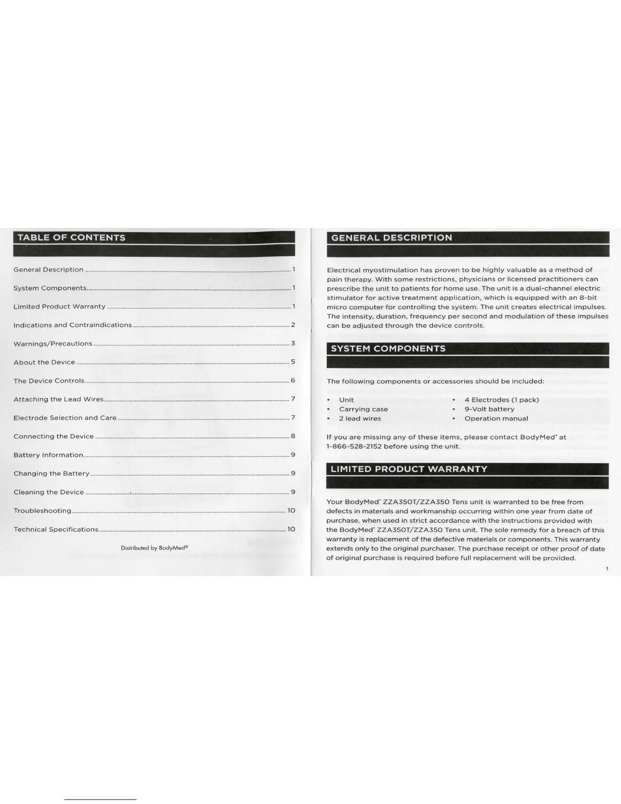 BodyMed zza350t - General Description; System Components; Limited Product Warranty
