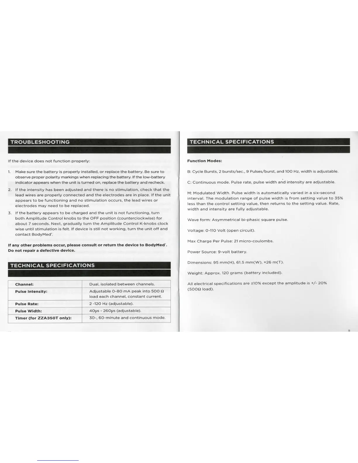 BodyMed zza350t - Troubleshooting; Technical Specifications