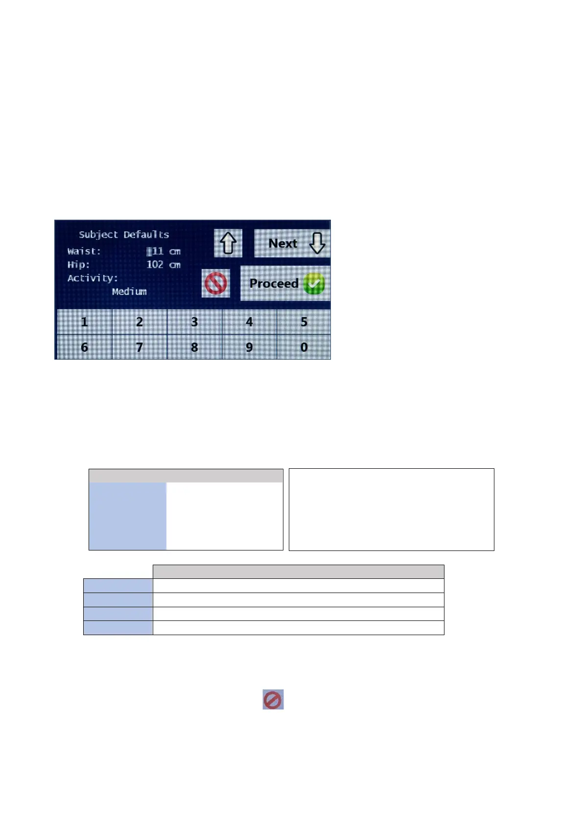 next screen showing waist/hip and activity level is displayed.