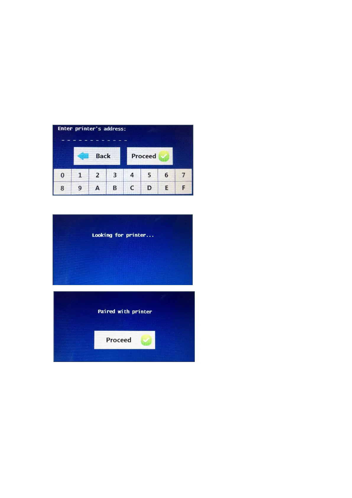 To pair the printer, press the printer button and the screen will ask for printer’s