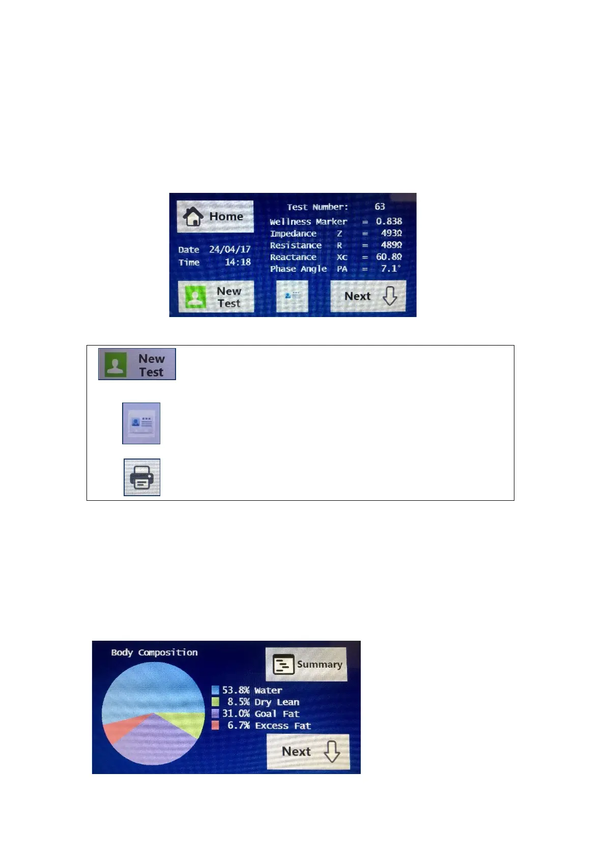 The first screen displayed is the test summary screen which shows the Wellness