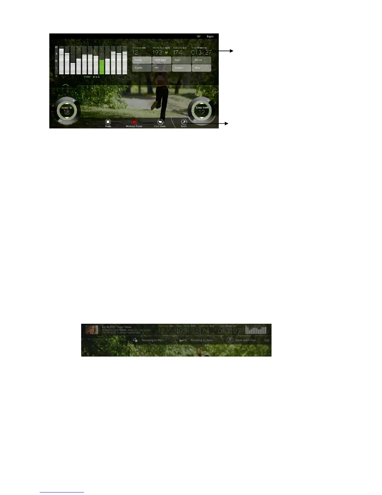 including distance value, heartbeat value, calorie value, time and lifting outline