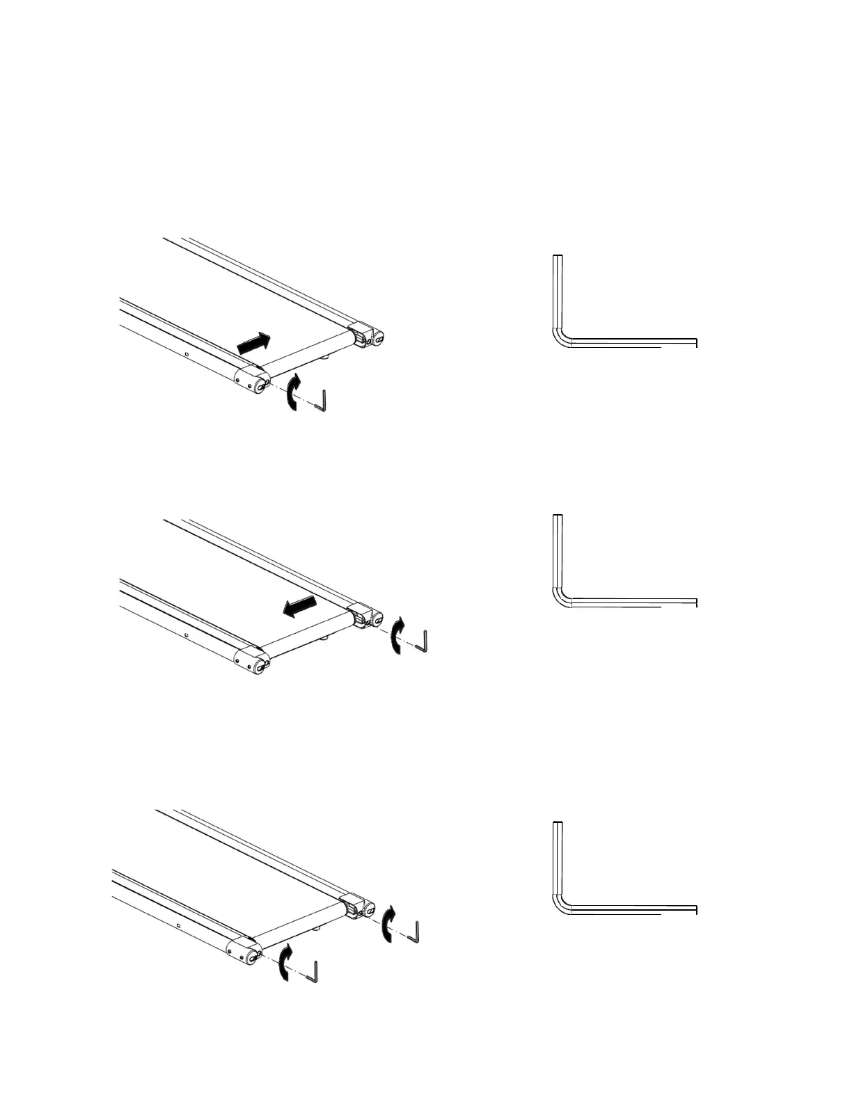 belt run at a speed of 5-6 KPH. Use the Allen Wrench provided to turn the rear roller adjustment bolts in