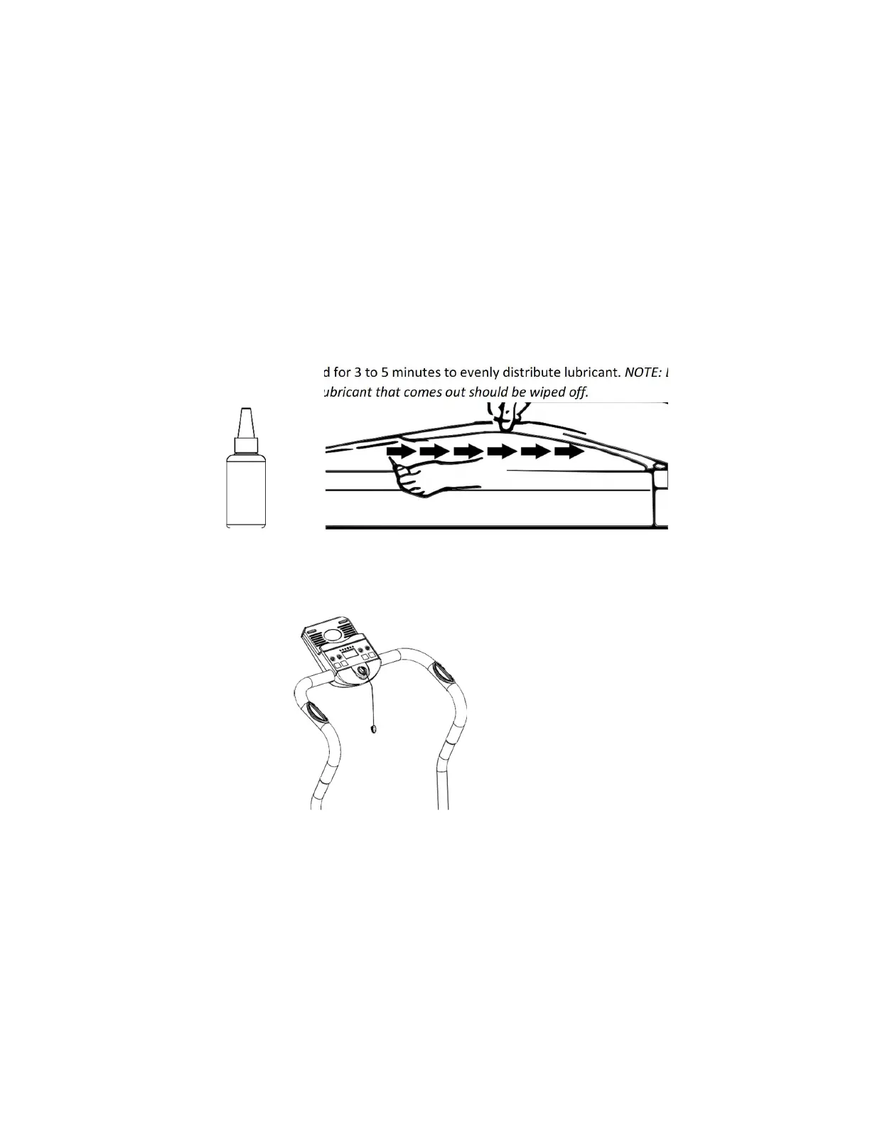 Run on the treadmill at a slow speed for 3 to 5 minutes to evenly distribute lubricant. NOTE: DO NOT over