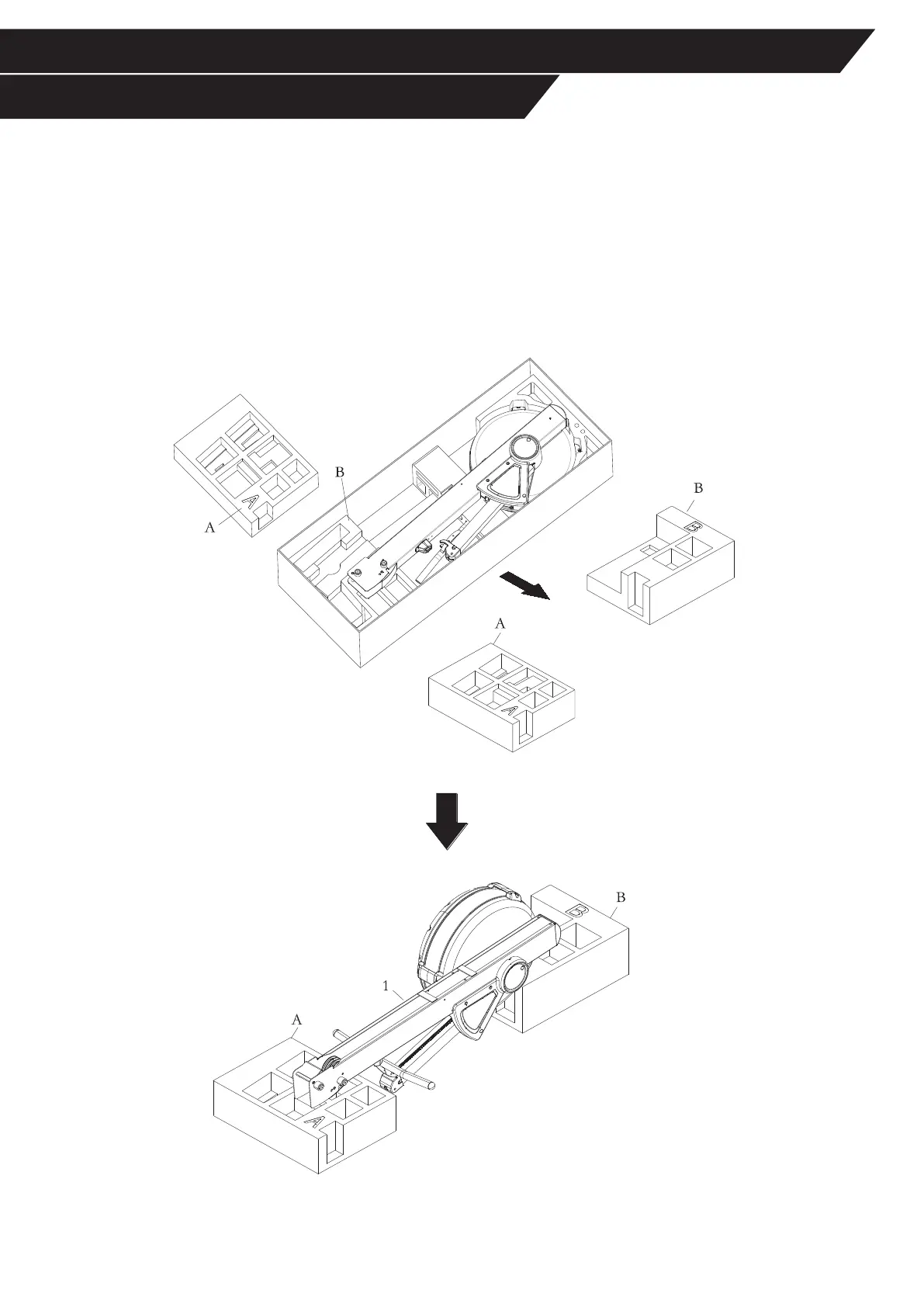 First, take out the packing materials Styrofoam (A) and Styrofoam (B). Then flip them over so