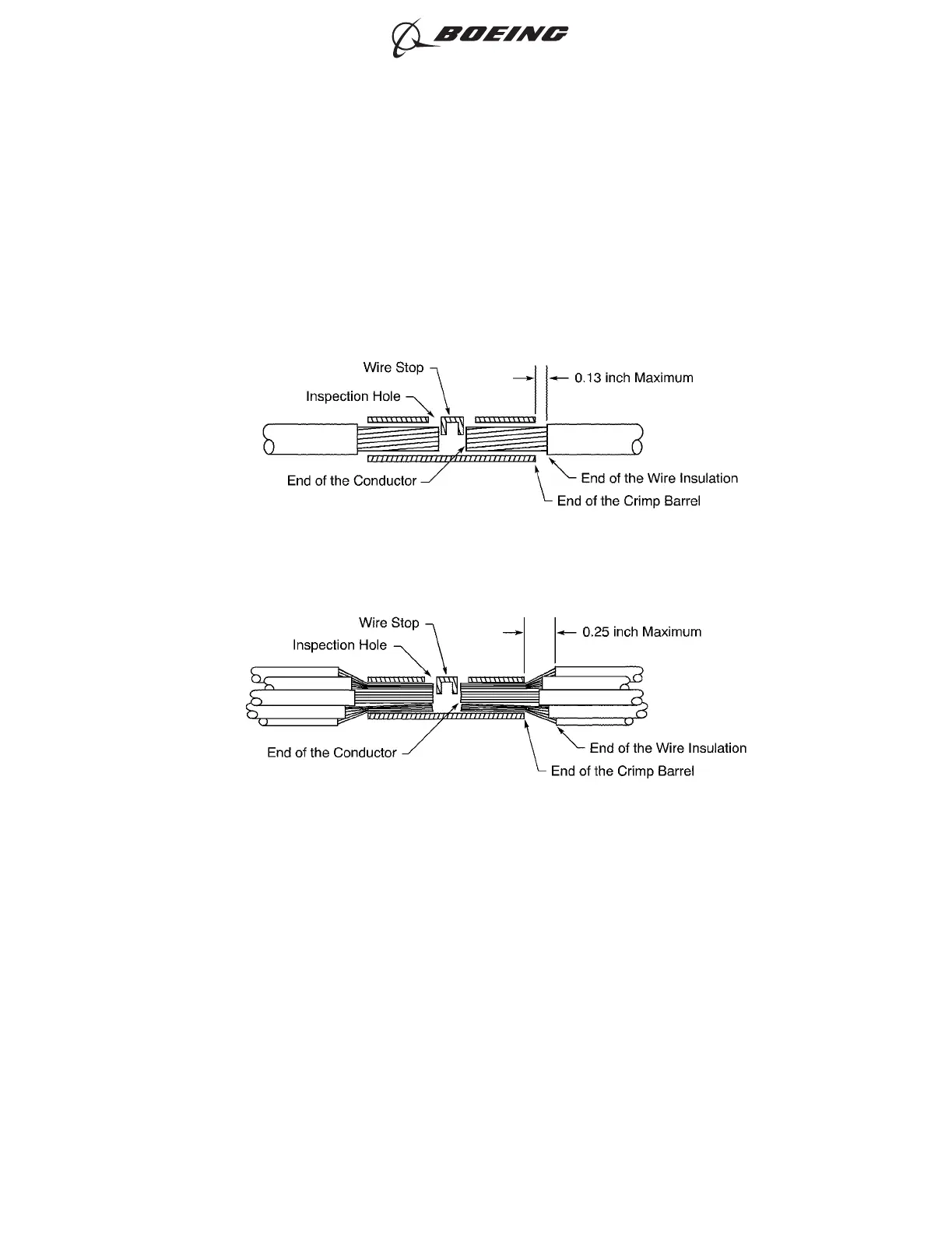 • For one wire, the end of the wire insulation is a maximum of 0.13 inch from the end of