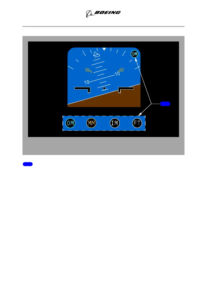 OM (cyan) – illuminates over an outer marker beacon.