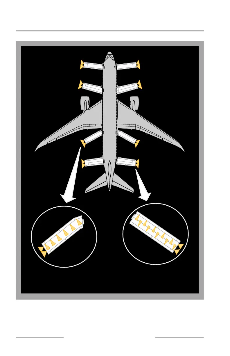 Exterior emergency lighting consists of integrated escape slide lighting. Each