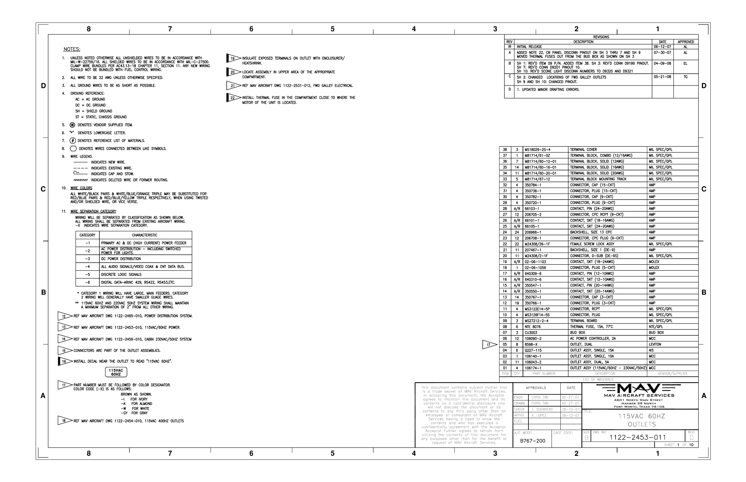 Boeing B767 - 24-53 115 VAC 60 Hz Outlets