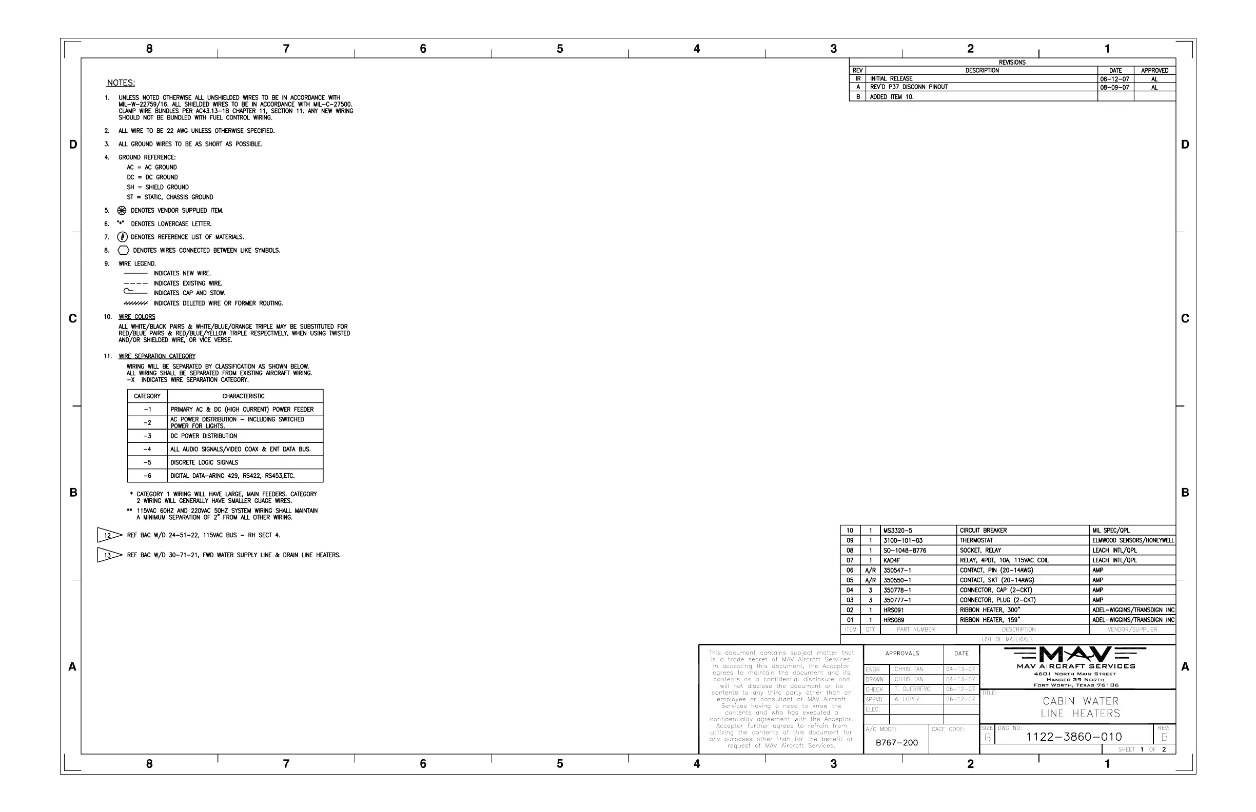 Boeing B767 - 38-60 Cabin Water Line Heaters