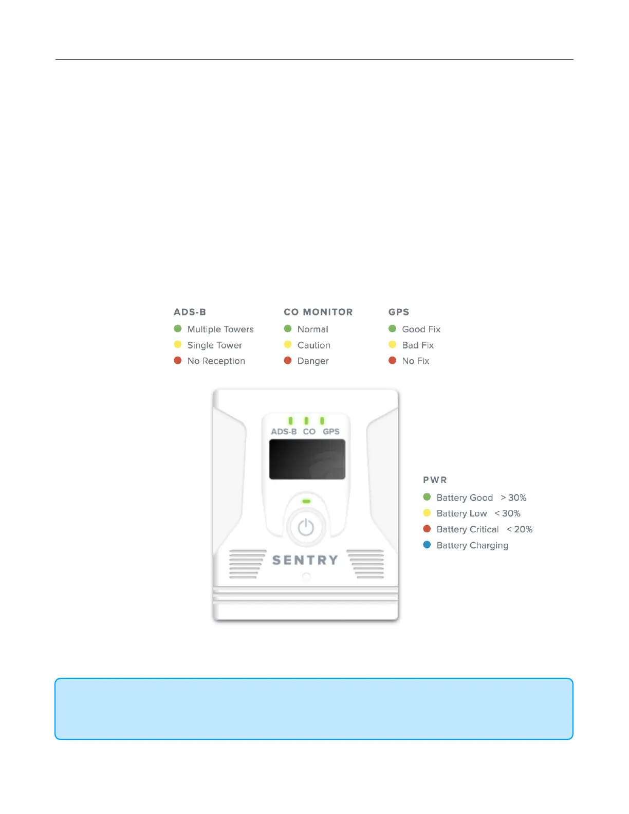 two seconds to power Sentry Plus on or off. When powered on, the OLED display, ADS-B, CO,