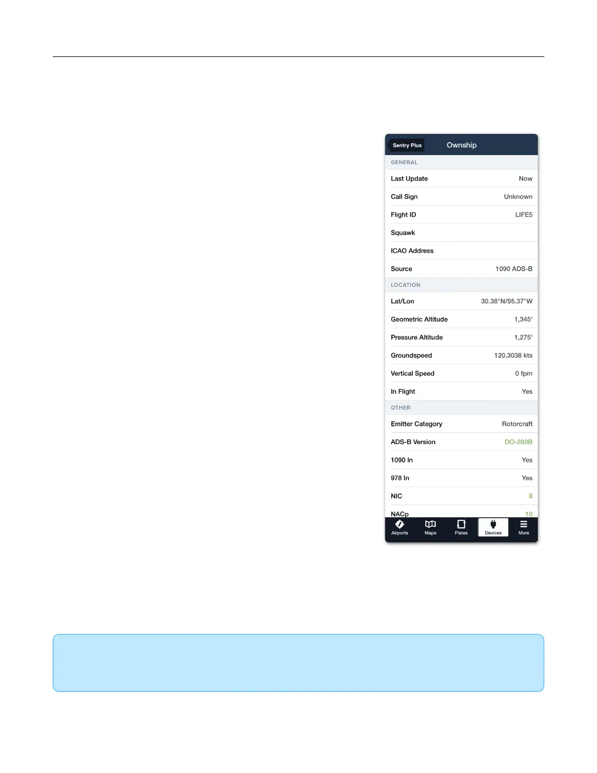 Tap More > Devices > Sentry > Ownship to see if ownship