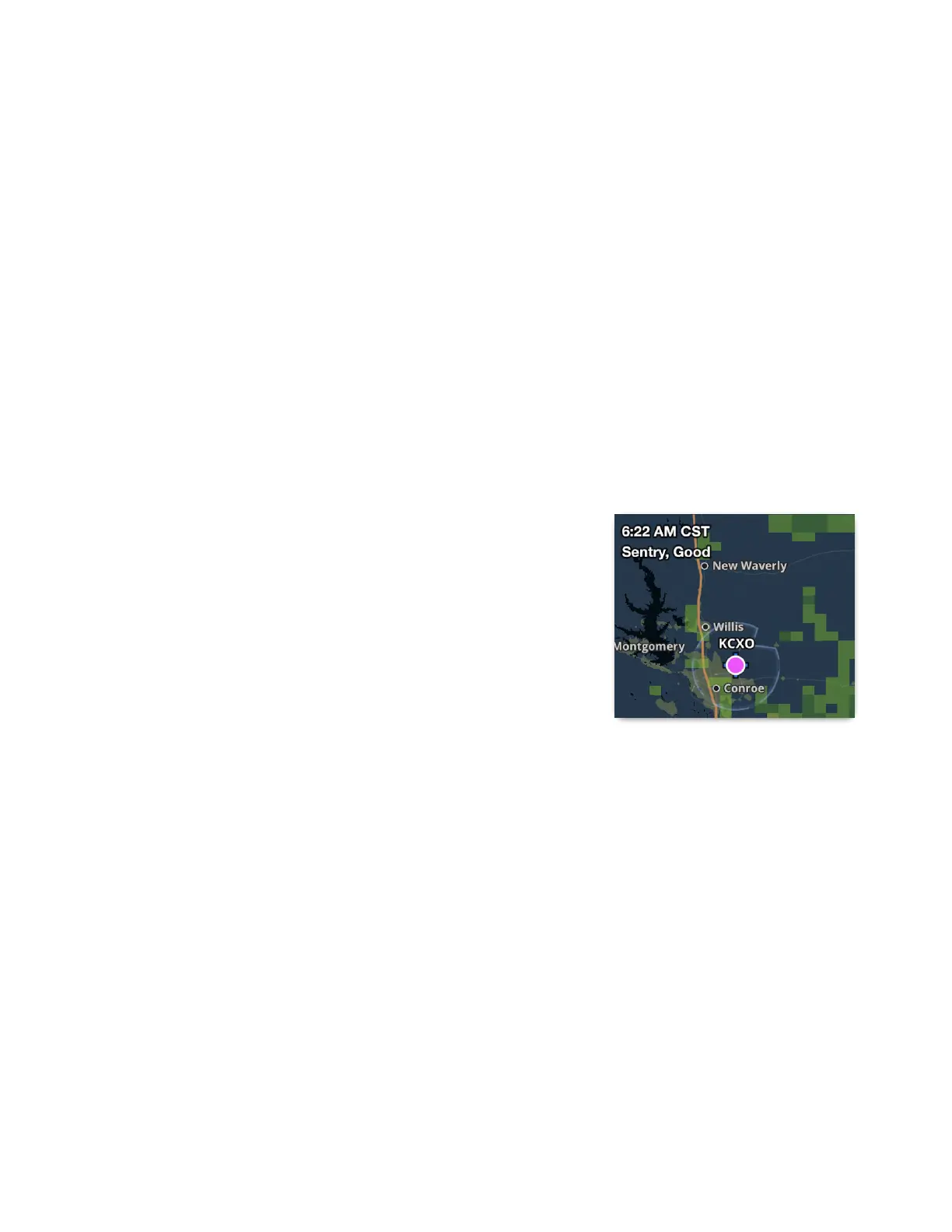 weather, NOTAMs, and tower information on the map when connected to Sentry, Sentry Mini,