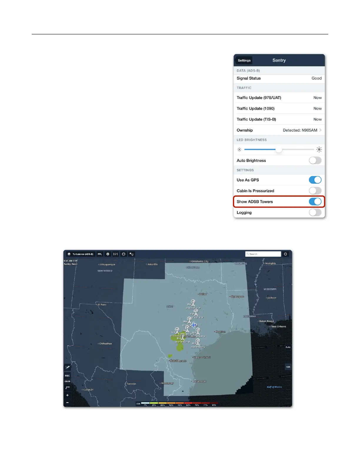 next to the tower icon. Tapping an ADS-B tower icon does not
