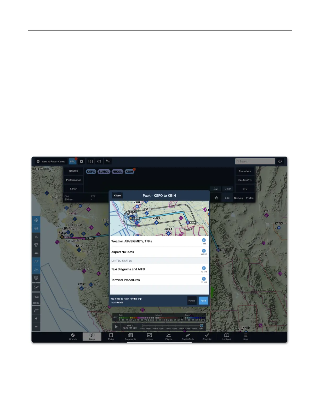 Packing for a flight downloads the latest weather information along with charts, NOTAMs, and
