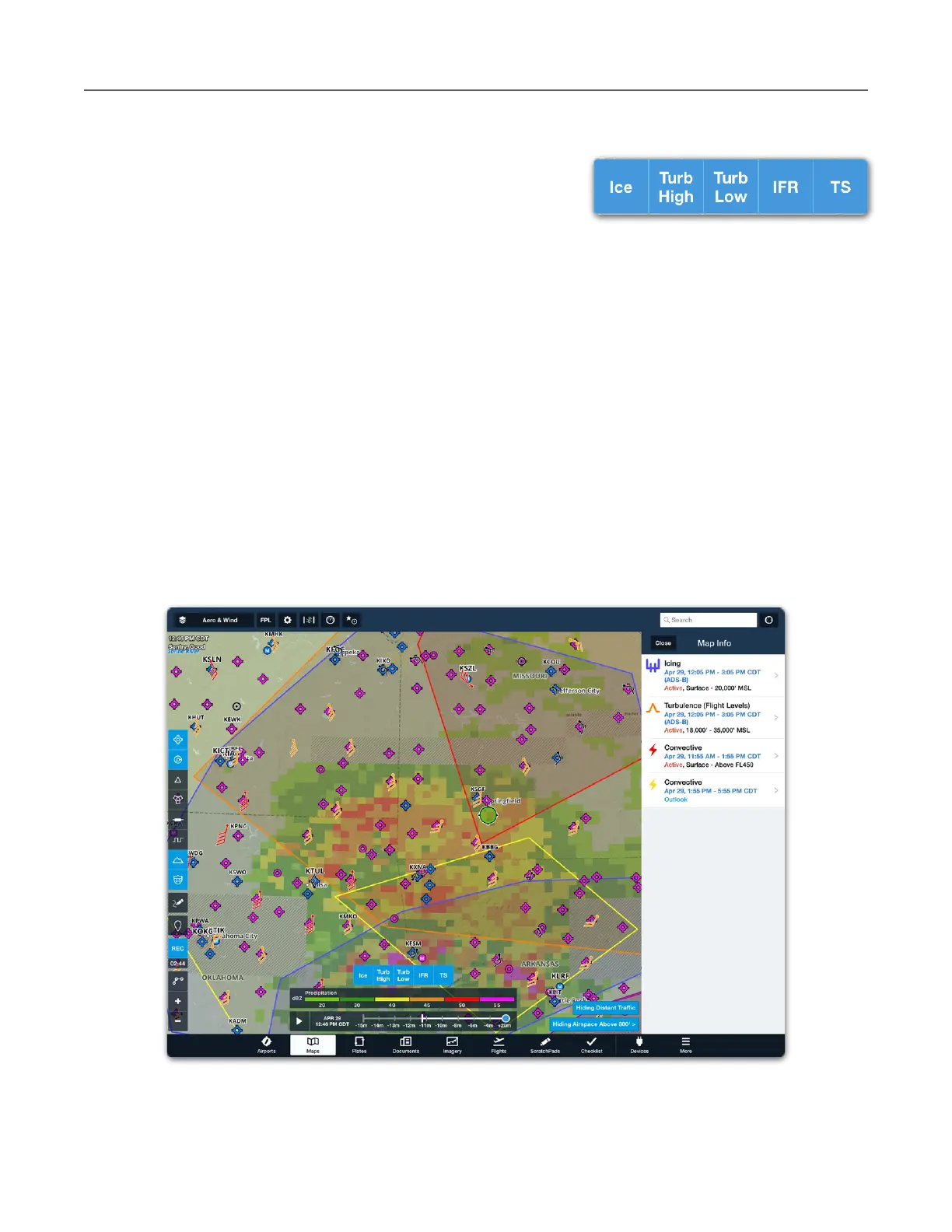 than one active layers where you tapped, the advisories are depicted in a list view. Tap an