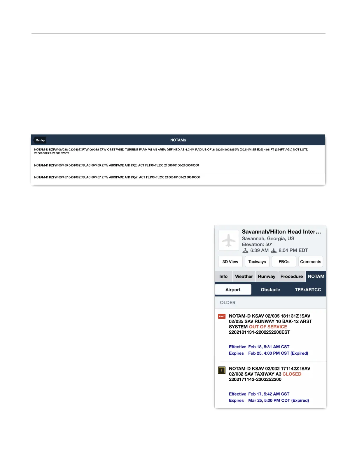 selecting More > Devices > Sentry > NOTAMs. SUA status NOTAMs have a 100 nm look