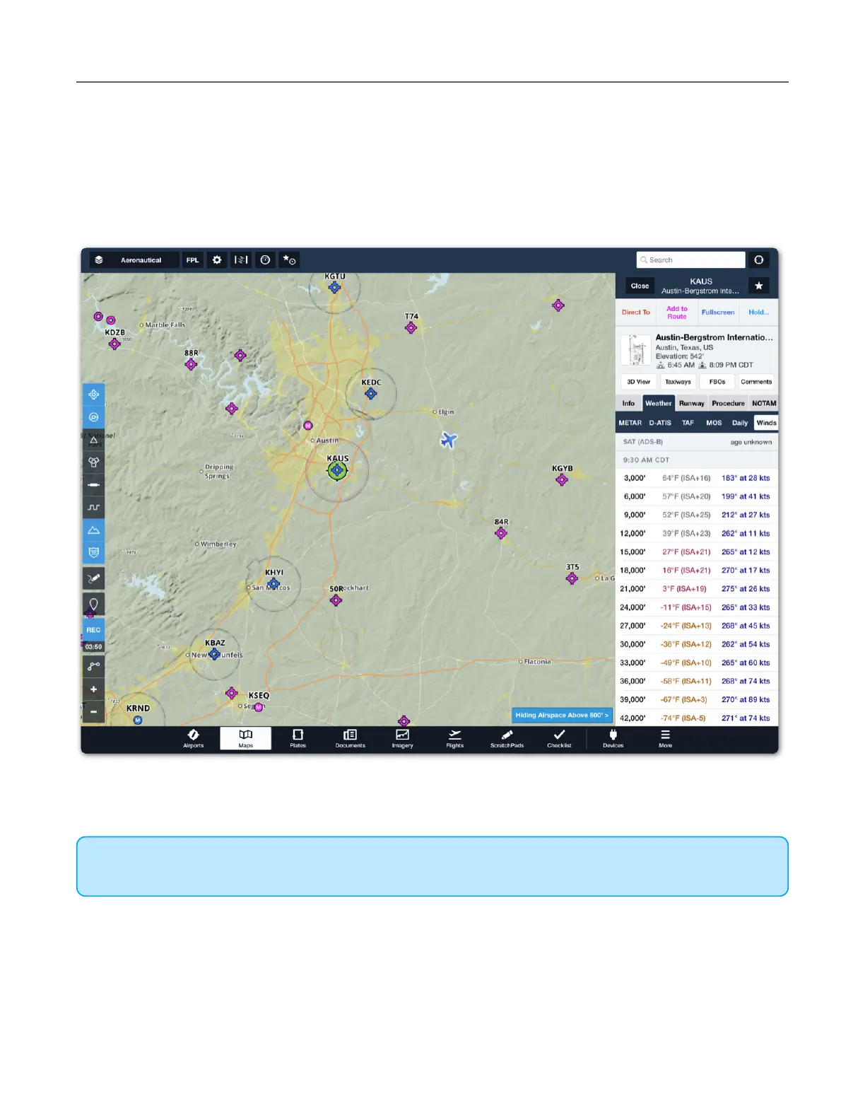 To view Winds & Temperatures Aloft, tap an airport icon and select Weather > Winds.