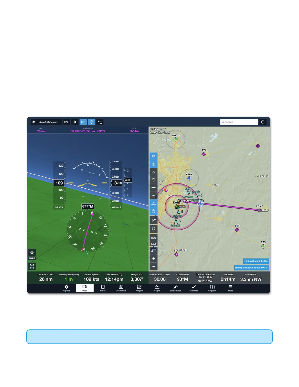 ForeFlight Mobile’s backup attitude indicator displays Sentry’s attitude and GPS track