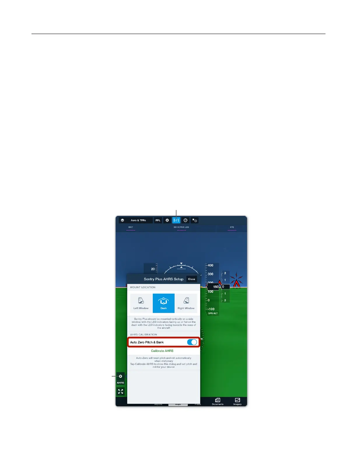 2. Tap the AHRS settings (gear) button.