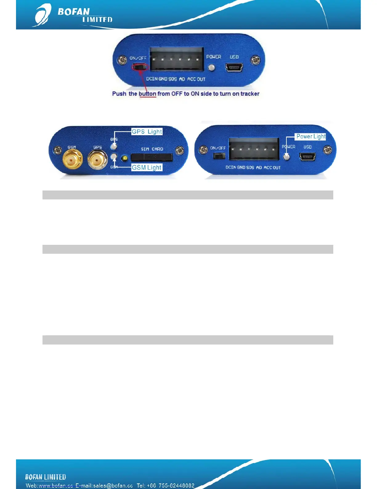 After turn on the tracker, please refer to the signal light functionality.