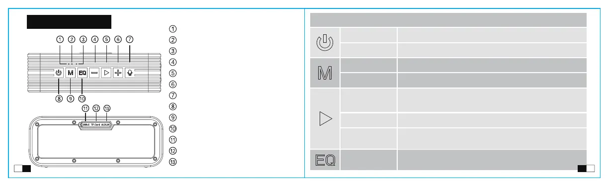 Commutation des modes de lecture (Bluetooth, USB-C, Aux-in ou carte TF)