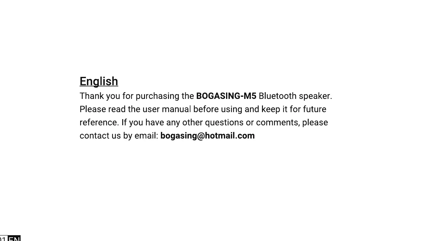 Thank you for purchasing the BOGASlNG-M5 Bluetooth speaker.