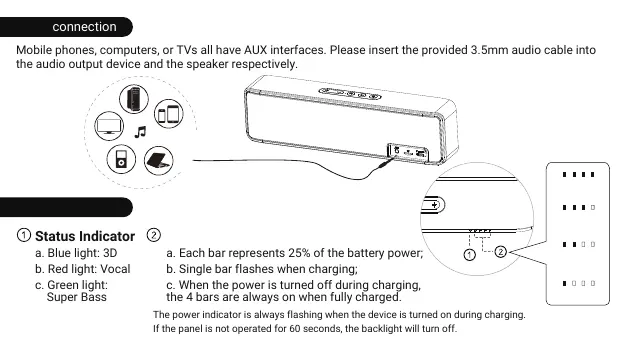 Mobile phones, computers, or TVs all have AUX interfaces. Please insert the provided 3.5mm audio cable into