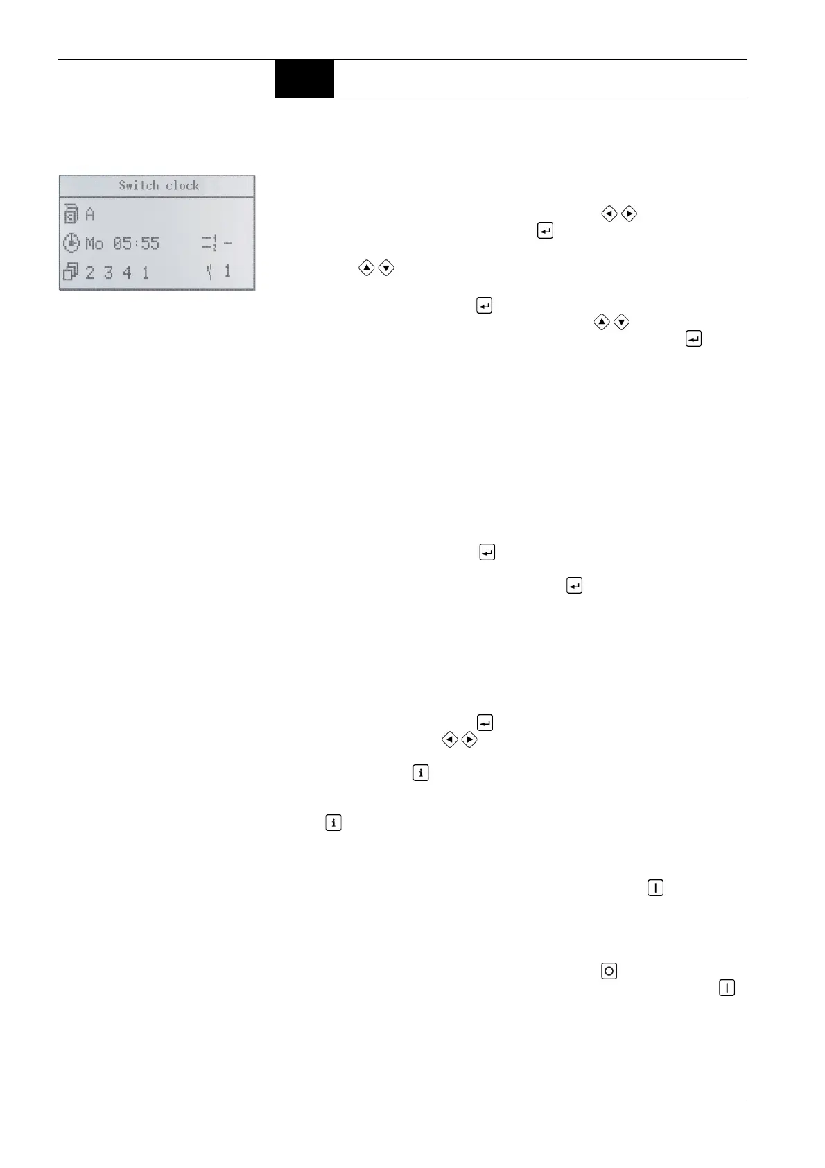 By entering Code 00798 the switch clock can be adjusted.