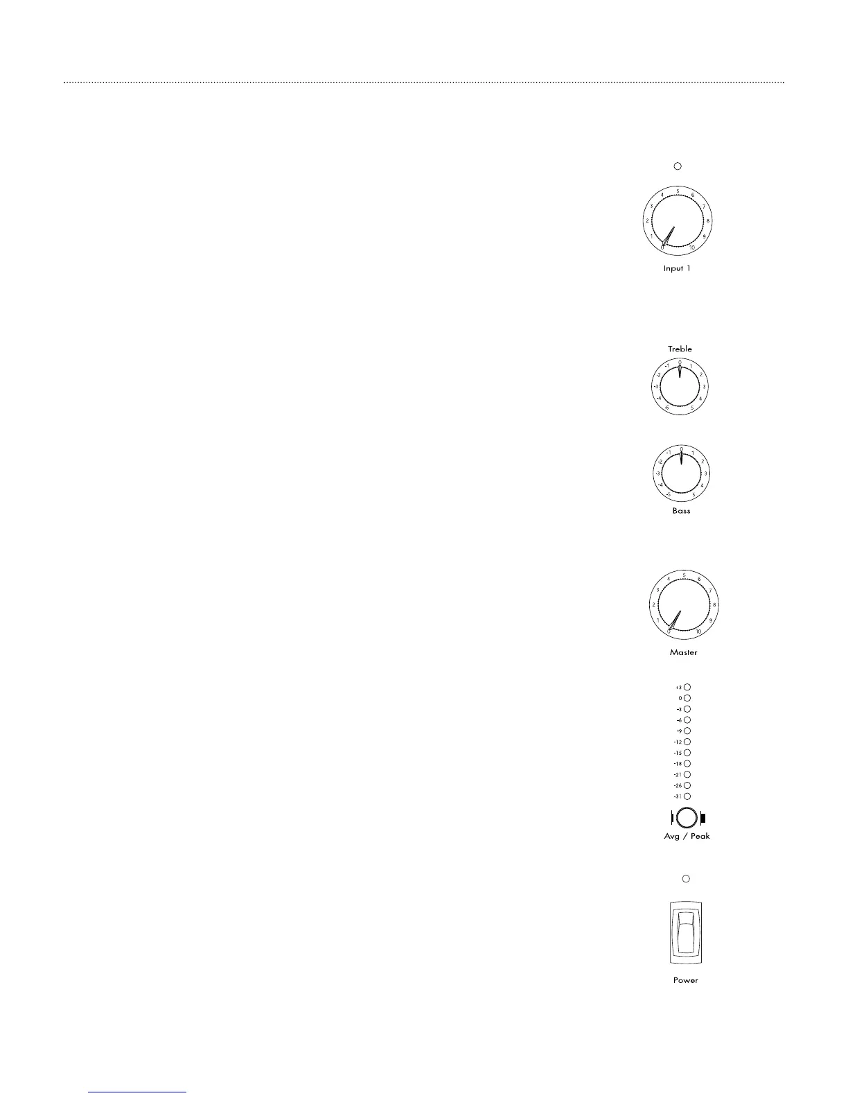 A single LED located above each channel’s volume control indicates the