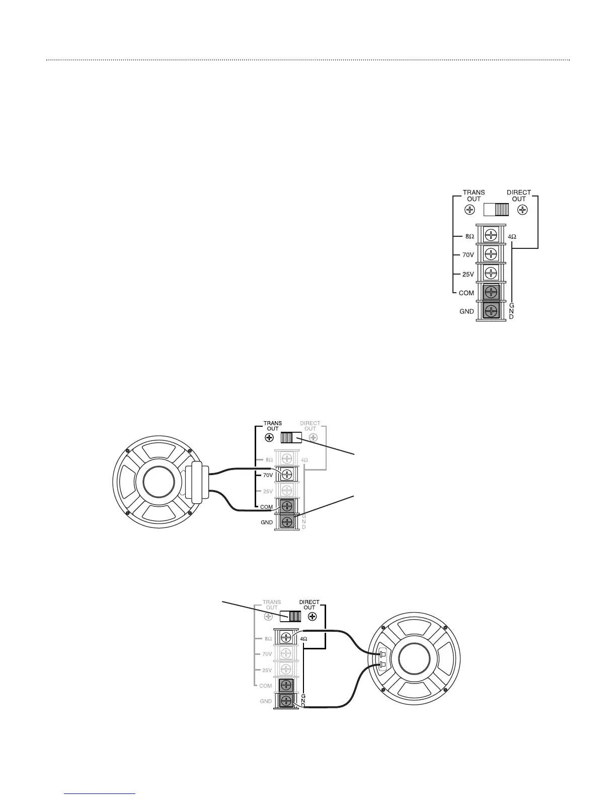 Typical connections to a 70V transformer-coupled speaker