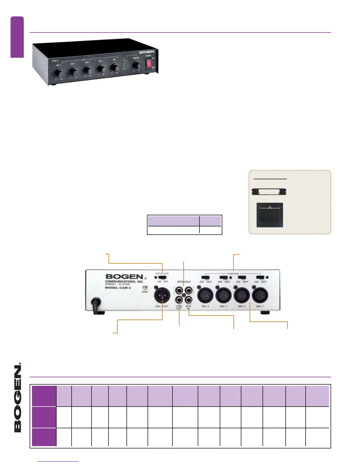 of inputs on Bogen or other public address amplifiers. The CAM2 provides four professional, low-impedance, balanced microphone