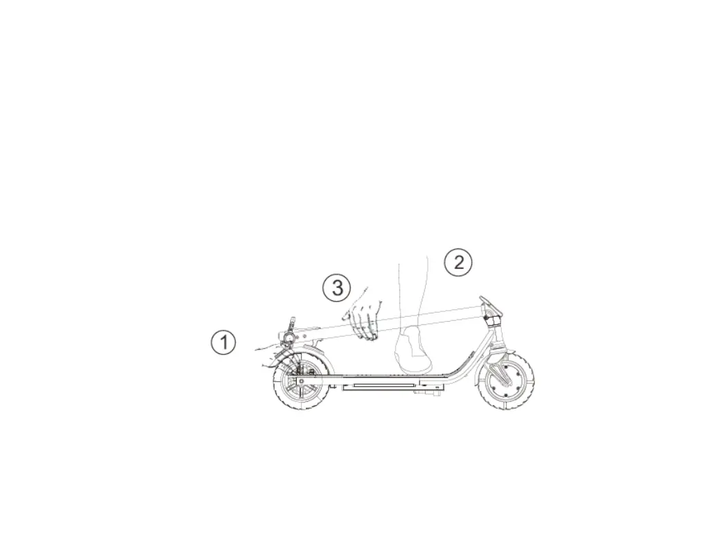 ②Stellen Sie einen Fuss auf den Trittbrett; ③ Schieben Sie das Gabelschaftrohr nach