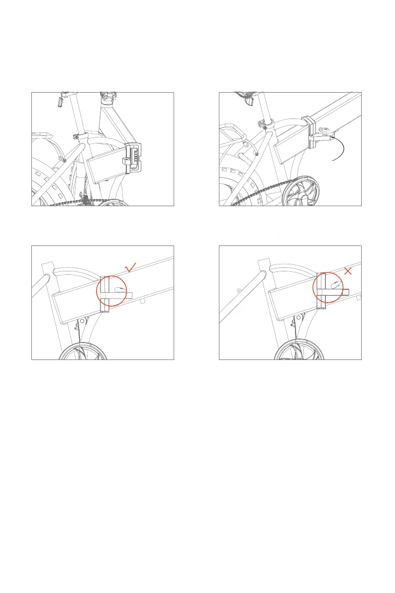 1. Hold the bike frame and stretch it 2. Close the folding lever and lock it as