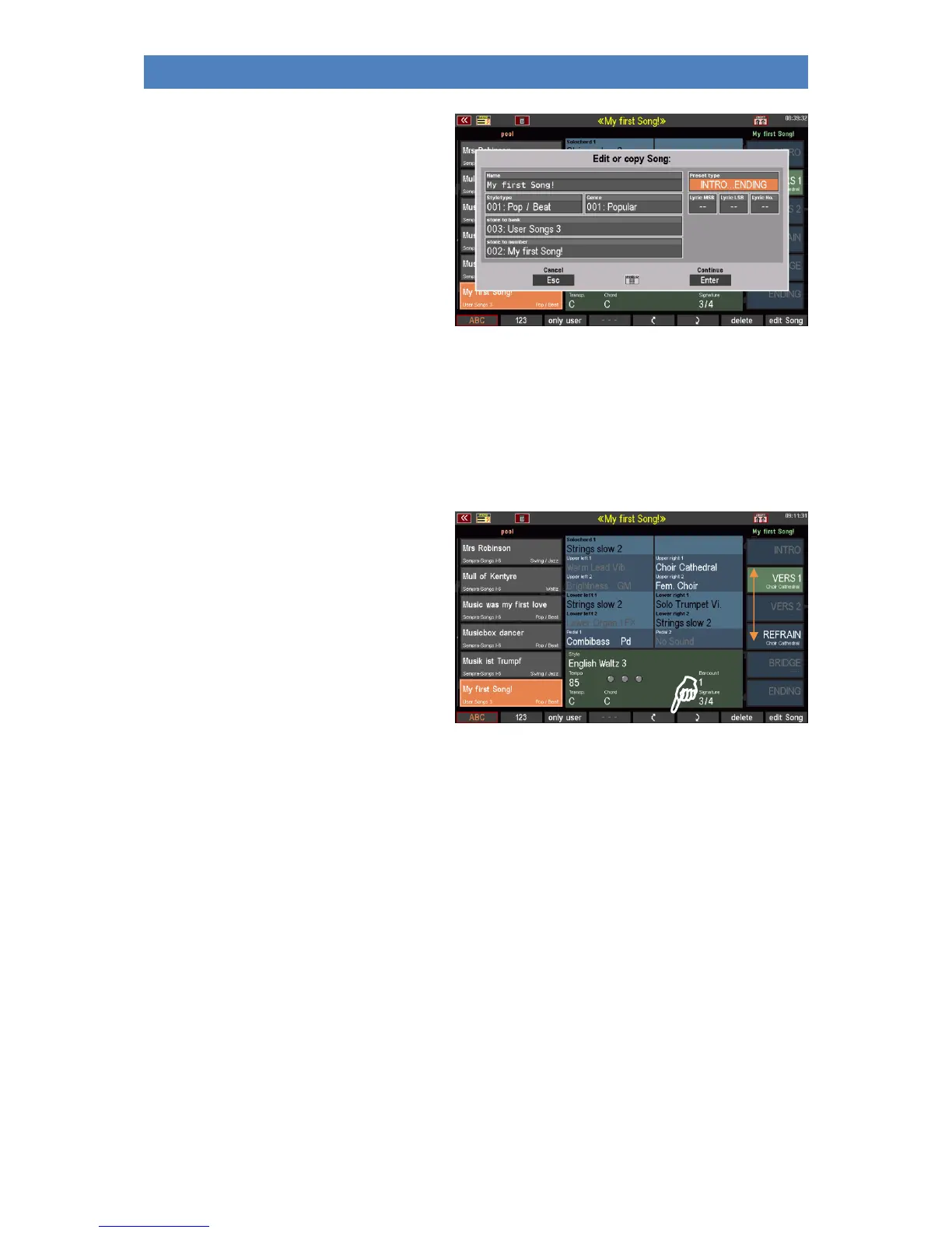 By the way: If you select a new bank/position number here, you can create a copy of the SONG. The