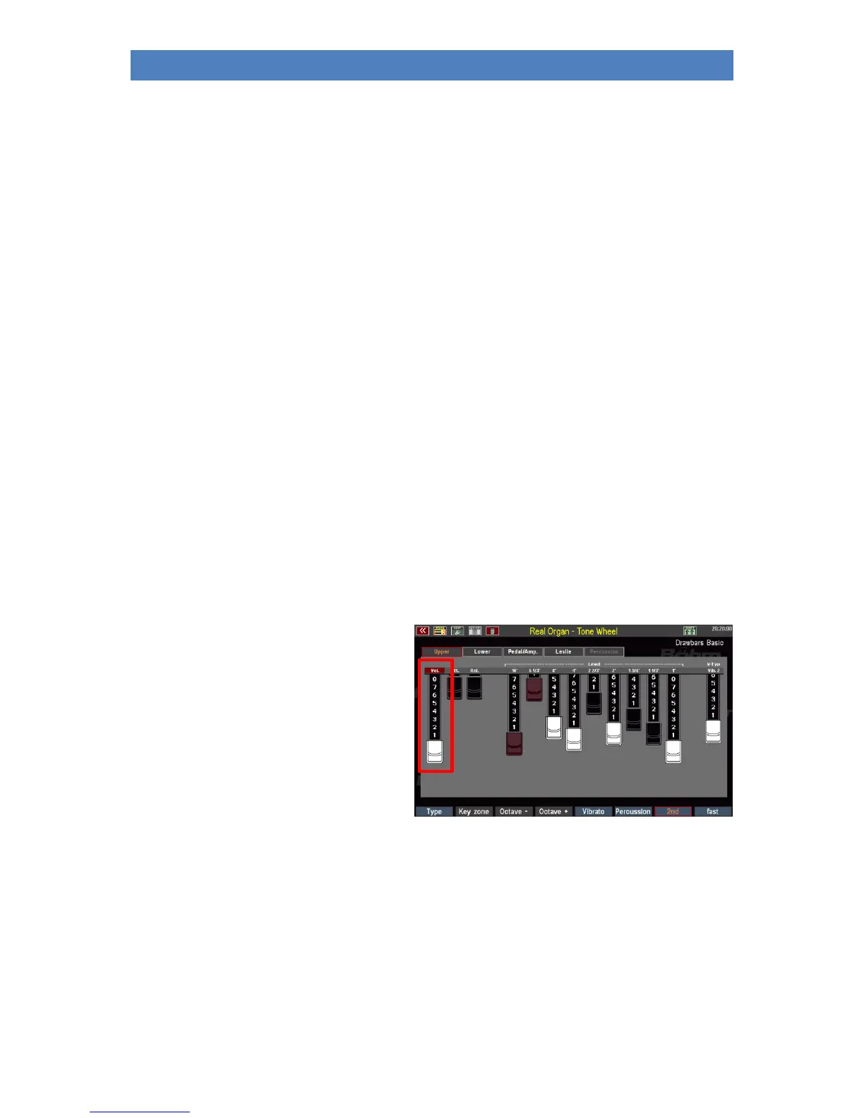 of the three drawbar systems Upper, Lower and Pedal. The two drawbars [Attack] and [Release] serve